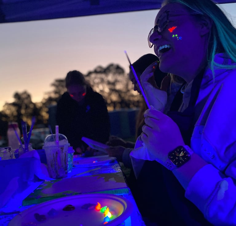 This little spark of an idea has grown into a place where creativity, wellbeing and good vibes collide. Here, it’s not about perfect paintings; it’s about the process, the mess, the laughter and the freedom to be yourself. From private parties to mindful workshops and paint & sips, I guide you to relax, explore and get a little wild. Bring your curiosity...